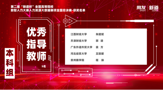 人力资源管理系、管理科学与工程学院管理信息系统系和创新与创业研究中心的老师通力合作,为参赛学生出谋划策。各位老师无私奉献的师德师风和严谨务实的治学态度鼓舞着每一位学生努力备战。该团队的主要指导教师郭靖老师获得了国赛“最佳指导教师”称号。