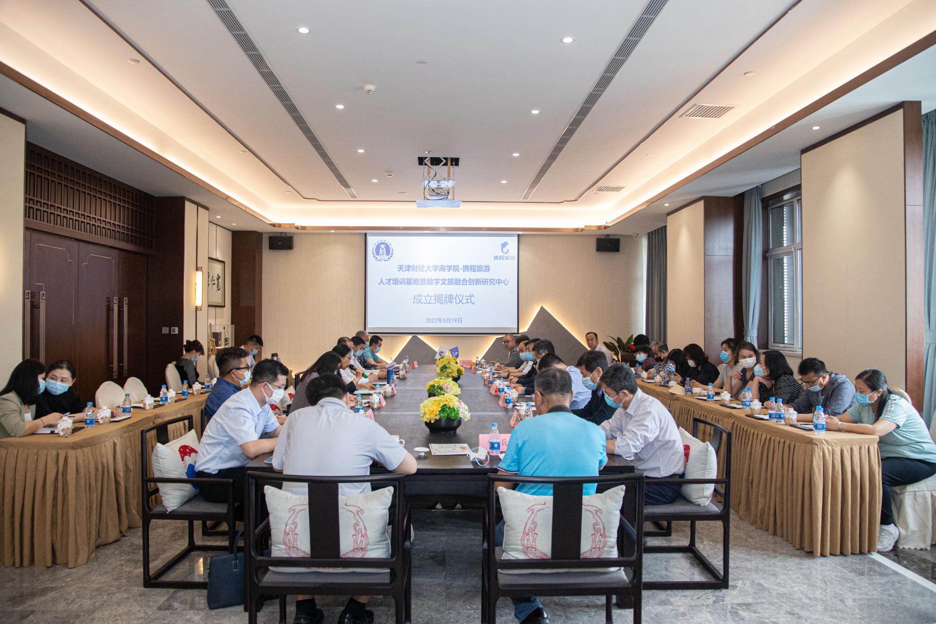院长彭正银、天津携程国际旅行社有限公司总经理王诚以及唐熙影视科技(天津)有限公司副总经理、数字文旅融合创新研究中心执行主任夏群共同为培训基地和研究中心揭牌。