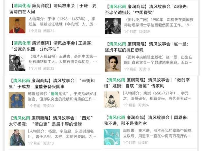 ”微信公众号平台推出“清风化雨 廉润商院”系列专题,累计发布20篇推送,通过“短音频+案例”等青年学生更容易接受的形式,唱响风清气正主旋律,达到以案明纪、以案释法的效果,锤炼学生拒腐防变的定力;4月6日,组织全体毕业生在G座报告厅观看警示教育片《政治掮客苏洪波》,以案为鉴、以案明纪,教育引导毕业生防微杜渐、筑牢防线。