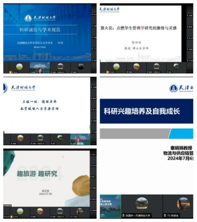 在“系主任说学术”部分,企业管理系主任陈颉教授、人力资源管理系主任王海霞副教授、市场营销系主任张初兵教授、旅游系副主任李正欢教授、物流与供应链管理系主任秦娟娟教授,分别围绕《科研诚信与学术规范》《三位一体,德能并举,数字赋能人力资源管理》《智慧火花:点燃学生管理学研究的激情与灵感》《趣旅游,趣研究》《科研兴趣培养与自我成长》展开,参营营员反馈积极、互动踊跃。