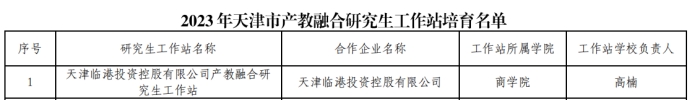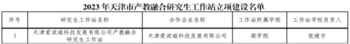 申报的“天津爱波瑞科技发展有限公司产教融合研究生工作站”获批立项建设项目;“天津临港投资控股有限公司产教融合研究生工作站”入围培育项目名单。