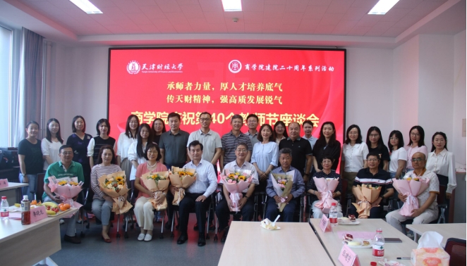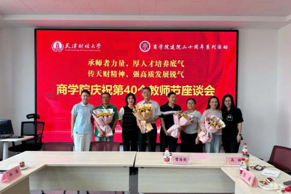 刘玉斌首先代表学院党政领导班子成员及全体教师向躬耕教坛、默默奉献的荣休教师致以感谢,向全体教师致以节日祝贺和诚挚问候。值此佳节,师生共聚一堂,学院邀请8名退休教师重返校园,忆往昔峥嵘岁月,看今朝风华正茂,望未来赓续奋进。学院廿载风雨兼程、欣欣向荣,一代代学院教师扎根天财、坚守初心、潜心育人,贡献了磅礴力量。座谈会现场,8位青年师生深情献花,表达感恩之情。