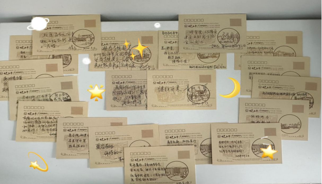 更上一层楼,更好服务中国经济发展”“继往开来,青胜于蓝”“努力奋斗,勇敢争光。感谢学院、感恩学院,祝学院越来越好!”……落笔生花,这小小的明信片,承载了不尽的祝福和美好的希冀。