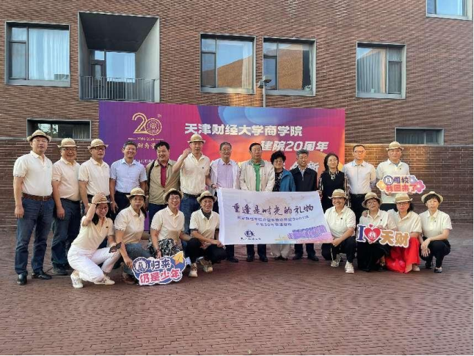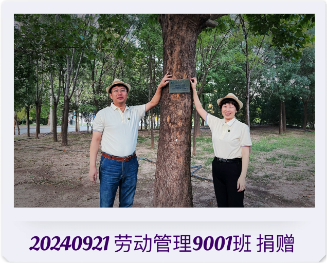 建院20周年的主题背景前合影留念,共同记录下这一珍贵时刻。随后,校友们还前往当年学习生活过的第二教学楼附近的小路,亲手为选定的梧桐树挂上了“劳动管理9001班”的铭牌,以此铭记那段共同度过的美好时光。