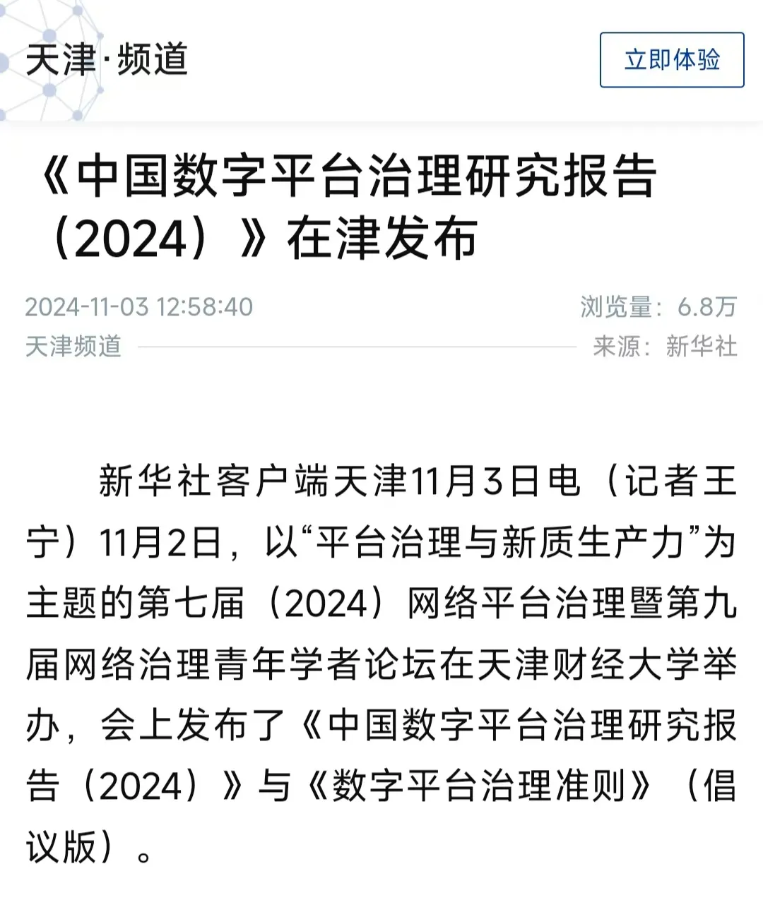 本次论坛深入探讨网络平台治理的最新进展、挑战与对策,为构建健康、有序、可持续的平台经济生态,推动经济高质量发展建言献策。中国经济新闻网、《金融时报》、《中国出版传媒商报》、天津频道、数据视野等多家媒体对此次活动进行报道!