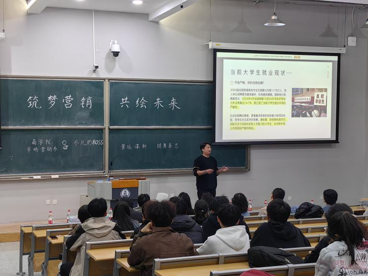 游戏结束后,张初兵主任向新生们阐述了市场营销系在数智化时代的培养目标和愿景。我们以“提出问题-分析问题-解决问题”的研究能力为核心,致力于培养具备“四有”素质(有理论、有技术、有创新、有担当)的优秀营销人才。通过扎实的底层能力和专业技能的结合,助力同学们在未来职业道路上的从容应对与成功。秉承师生价值共创的理念,我们期待师生间的平等互动与协作,共同实现成长与进步。