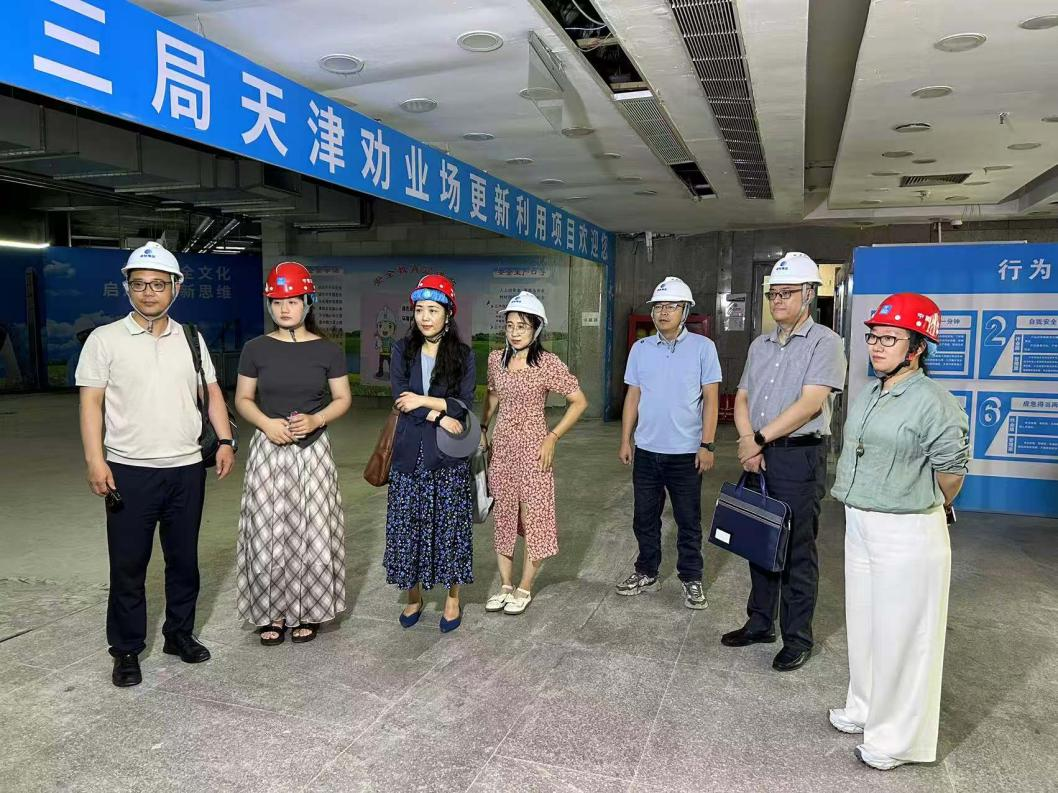 党委书记刘玉斌,营销系副主任曹海英,旅游系教师王彩彩,津融集团董事会秘书、组织部部长陈军辉,天津津融不动产运营有限公司副总经理季迎欣,津融集团商管中心总经理高博实地考察天津劝业场更新利用项目,共同探讨商业与文旅融合的创新发展路径。