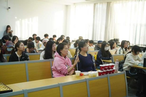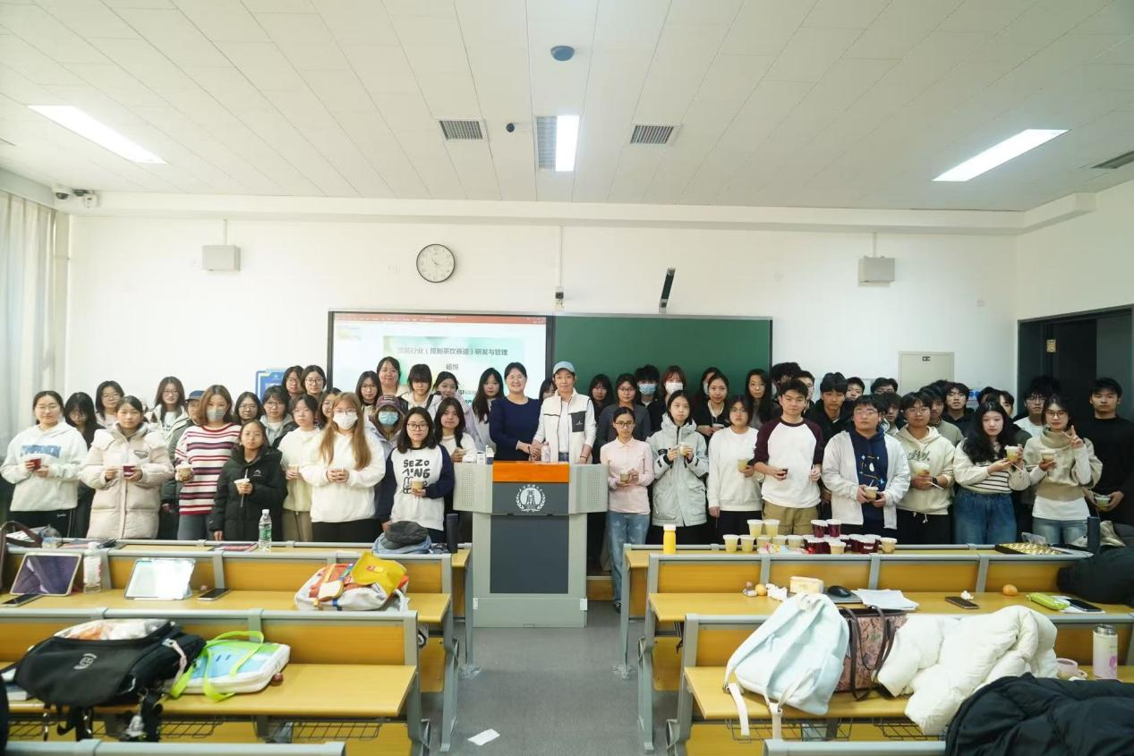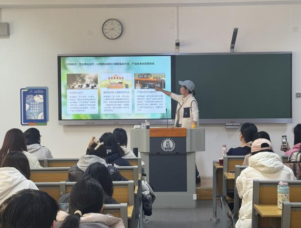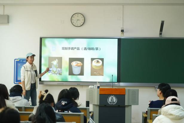 分享的最后,杨悦还精心设计了品鉴环节,给每一位同学准备了包括杨桃油柑冰茶、朗姆玫瑰石榴果茶、焦糖板栗奶茶三款特色饮品。在互动交流环节中,她针对反式脂肪争议、快消品与手调饮品定价差异、小众水果研发、创业选址与产品定位等问题逐一解答,结合自身研发案例提供实用建议,现场氛围热烈。参与讲座的学生韩晶晶表示:“杨总结合企业实际产品开发的案例特别有说服力,每一个环节都讲得很透彻。通过杨总的分享,我不仅深入了解了饮品行业饮品创新的理论逻辑,更被杨总对行业的赤诚热爱和实干态度打动,激励我以后不管做什么都要带着匠心去深耕。”包天浩也提到:“这次分享满满都是干货,让我明白一款受欢迎的新品从不是凭空而来,而是扎根用户需求,一点点打磨出来的。”授课教师曹菲也总结说:“杨总以丰富的行业实战经验,拆解了当前饮品行业新产品开发与管理的核心逻辑,为大家在课堂上学习的理论知识提供了重要的补充。这些真知灼见必将促进同学们更好地理解专业知识,帮助大家洞察真实的商业世界。”