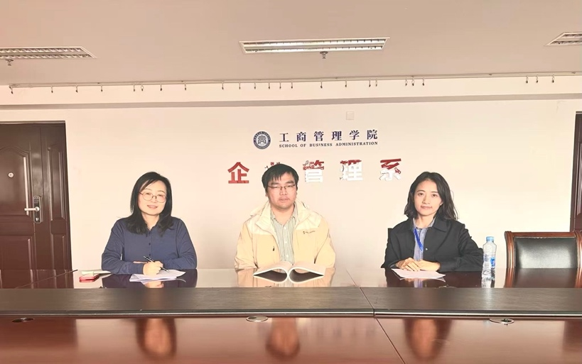 企业管理系主任高楠和教师高辉赴江西财经大学工商管理学院企业管理系开展调研交流。江西财经大学工商管理学院企业管理系王伟明主任对调研组一行进行了热情的接待。