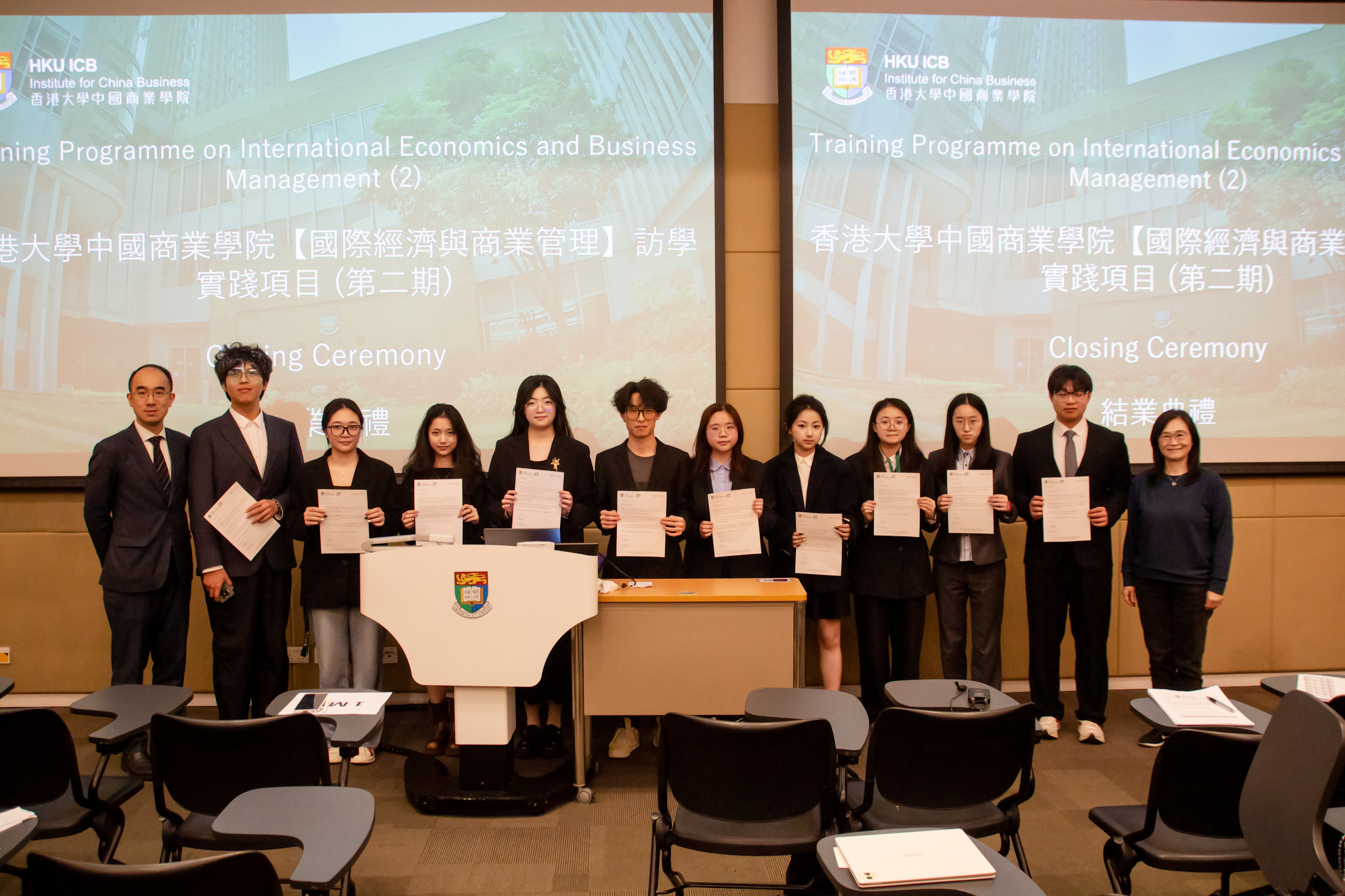 1月24日的结业汇报会成为访学成果的集中展示。学生团队以“中国新能源汽车可持续投资战略”为题,运用课程所学的SWOT-PEST整合分析模型,提出“碳积分金融化”“电池回收证券化”等创新方案。港大评审教授高度评价其“数据支撑扎实、商业洞察敏锐”,肯定了骆添和谢婧愉等同学在行业趋势分析与战略建议中展现的专业素养。最终,王心仪同学凭借全程优异表现获得港大教授亲笔推荐信,为未来深造奠定基础。