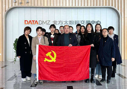 办公室党支部全体党员及部分学生代表共同走访了北方大数据交易中心并开展主题党日活动。双方就大数据交易活动、学生就业岗位等方面进行了深入交流。