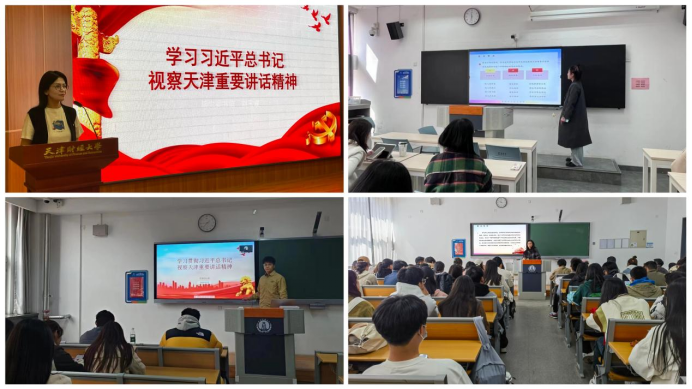 牢记嘱托,积极行动,全院凝心聚力形成了“带头学、全员学、互动学”的三维学习格局,打造“学院谋、支部带、教师领、学生动”的四步贯彻落实机制,将习近平总书记视察天津的重要讲话精神贯彻到学院中心工作中,不断思考,不断践行,不断创新,深刻理解和把握学院的创新增长点,努力提升学院育人三力,即“思政引领力、教学强基力、科研助推力”,紧扣培育高水平财经人才这一中心任务,推动全院师生深学善用“习近平总书记视察天津重要讲话精神”,将讲话精神与学院实际相结合、与年度重点工作相结合,与育人目标相结合,展现“财商”精气神,将师生的努力转化为书写“善作善成”的生动实践,助力天财高质量发展。