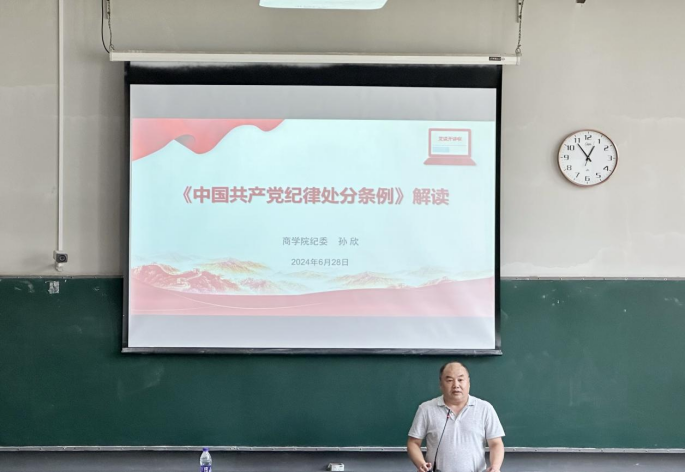 党委书记刘玉斌、纪委书记孙欣共同讲授专题党课,全面加强党的纪律建设,学院全体教师党员、学生党员代表共计140余人同上一堂思想课、政治课、纪律课。