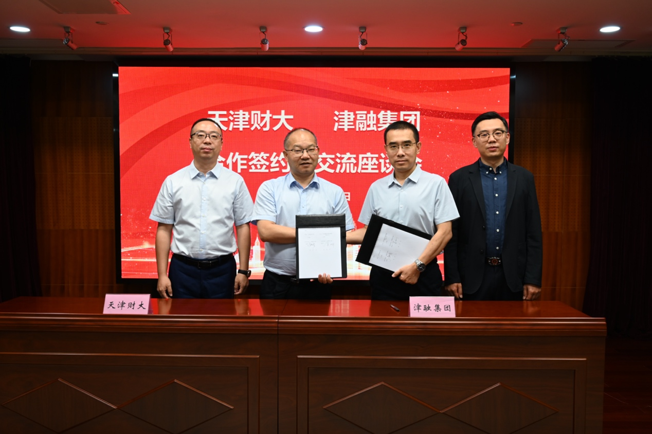 2025 年 6月 19 日,我校与天津津融投资服务集团有限公司战略合作签约仪式在津融集团会议室隆重举行。党委副书记、校长孟昊,党委常委、副校长马亚明,津融集团党委书记、董事长、天财 98 届校友刘智,副总经理吴翀出席签约仪式,我校研究生院(学科办)、发展战略办、无码做爱