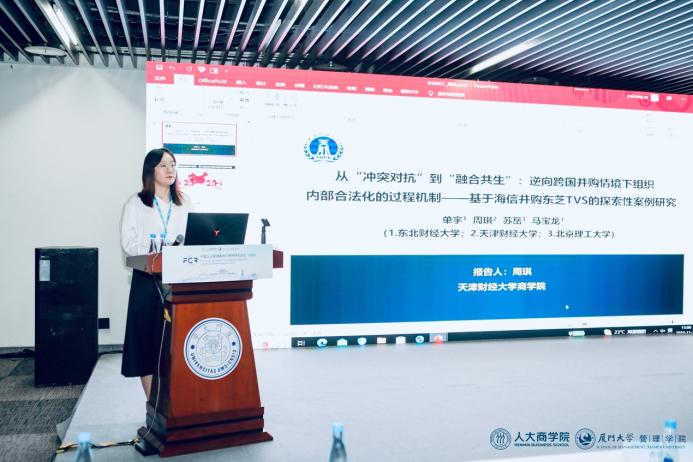 学院企业管理系周琪老师作为分论坛(三)“战略管理”专题的主持人,宣讲了论文《从“冲突对抗”到“融合共生”:逆向跨国并购情境下组织内部合法化的过程机制——基于海信并购东芝TVS的探索性案例研究》,该论文基于“并购方-被并购方”双边视角,构建了基于并购方合法性建构和被并购方合法性判断的组织内部合法化过程模型,为逆向跨国并购的组织内部合法性研究提供了更丰富的洞见。会议专家对该研究的前沿性给予了高度评价,并对其进一步修改和完善提供了宝贵的建议。