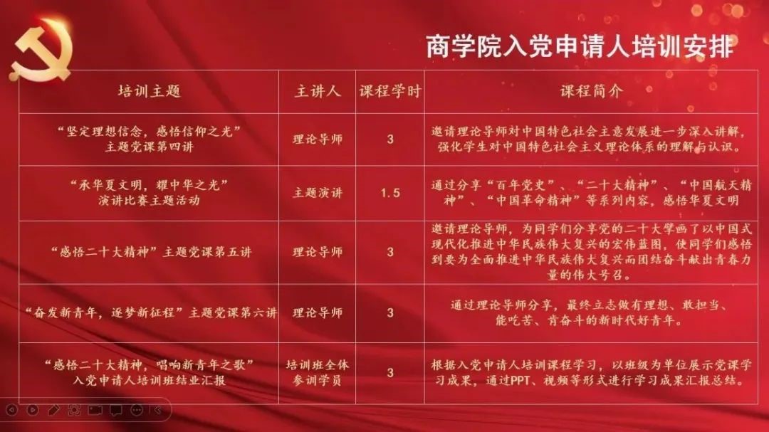 梁珊珊老师讲解了入党申请人培训班的课程安排与入党的具体流程。
