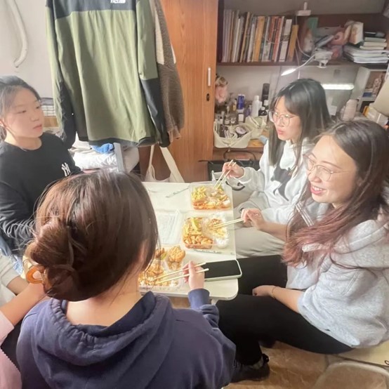 很开心我们宿舍能有这个宝贵的机会和李妍老师一起吃饭。用餐期间,李老师与我们亲切交流并解答了一些生活学习中的烦恼。这次“教师外卖”活动给我们留下了深刻的印象。我们与老师有很多共同话题,在与老师的交流中,我感受到了来自老师的耐心倾听和细致关怀。谈及学习和生活上的困惑时,老师给予了明确的建议和温暖的鼓励,让我更加坚定了前行的方向。交流过程中融洽温馨的氛围让我更加珍惜。通过这次交流,我不仅解决了生活中的困扰,也收获了更多的勇气和动力,相信在以后的大学生活和学习中会更加受用。