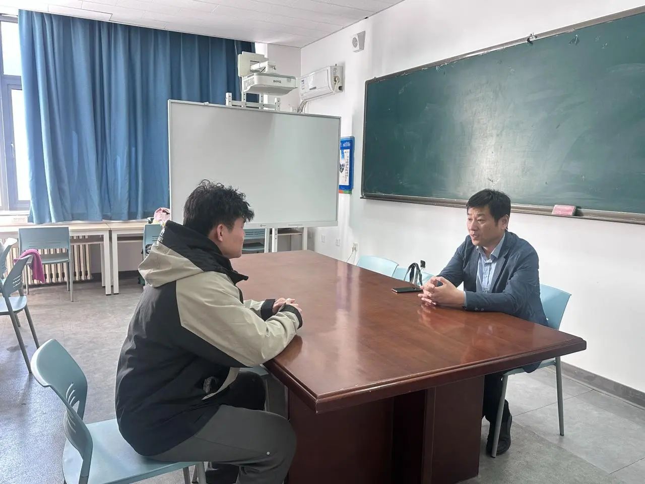的老师们与学生面对面、一对一交流。