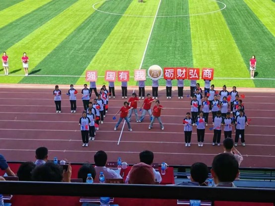 方阵队昂首挺胸,目光如炬,用坚定的步伐映射“强国有我,砺财弘商”的昂扬斗志,方阵表演结合了新中国成立75周年与专业特点,用独特的方式、饱满的热情展现了团结拼搏、积极进取的精神风貌。